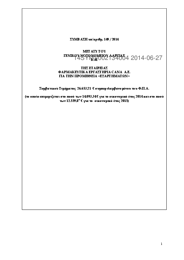 6. ΠΡΟΚΗΡΥΞΗ ΑΡΙΘ.27/2014 ΙΑΤΡΙΚΑ ΑΝΑΛΩΣΙΜΑ