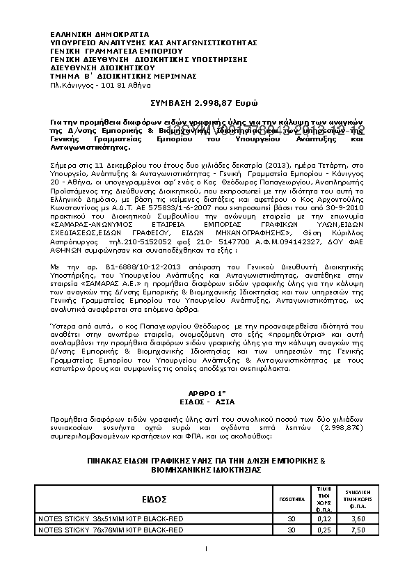 7. Προμήθεια διαφόρων ειδών γραφικής ύλης για την κάλυψη των αναγκών της Δ/νσης Εμπορικής & Βιο