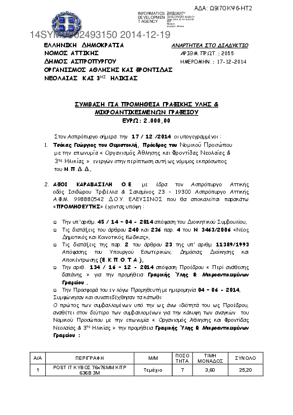 Αναζήτηση σε προκηρύξεις και συμβάσεις για: