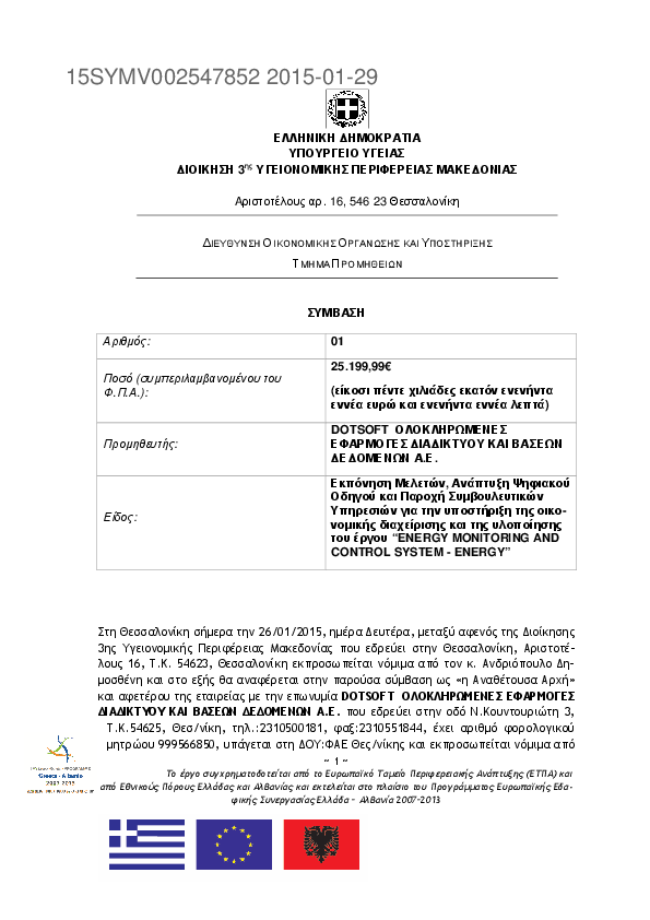 1. Σύμβαση Νο.1.Εκπόνηση μελετών,ανάπτυξη Ψηφιακού Οδηγού και παροχή συμβουλευτ.υπηρεσιών MIS 903039