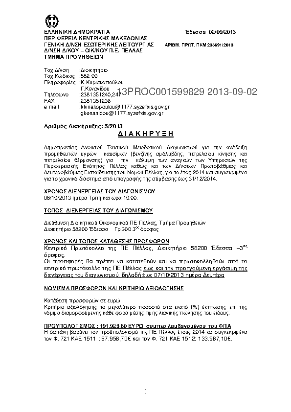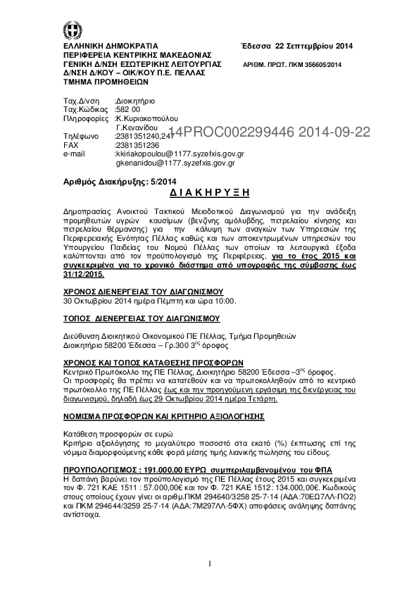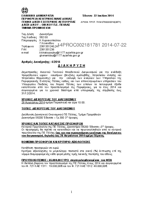 3. ΔΙΑΚΗΡΥΞΗ ΑΝΟΙΚΤΟΥ ΤΑΚΤΙΚΟΥ ΜΕΙΟΔΟΤΙΚΟΥ ΔΙΑΓΩΝΙΣΜΟΥ ΥΓΡΩΝ ΚΑΥΣΙΜΩΝ ΠΕ ΠΕΛΛΑΣ ΕΩΣ 31/12/2014