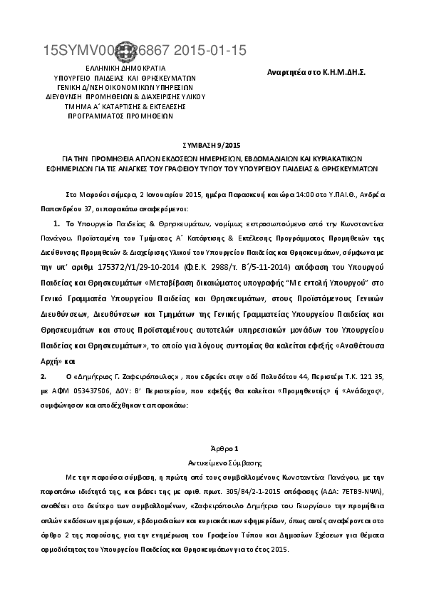 Αναζήτηση στο ΚΗΜΔΗΣ