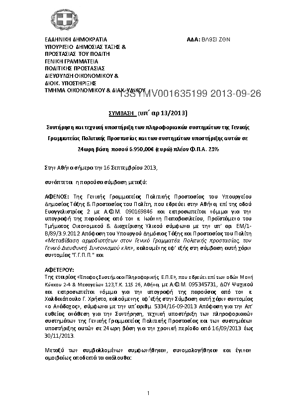 4. «Eτήσια Συντήρηση και τεχνική υποστήριξη των πληροφοριακών συστημάτων της Γενικής Γραμματείας Πολιτι