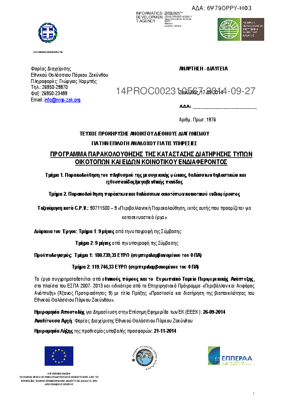 Αναζήτηση σε προκηρύξεις και συμβάσεις για:
