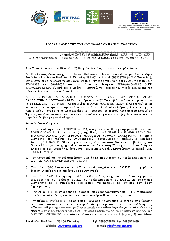 1. ΠΑΡΑΚΟΛΟΥΘΗΣΗ ΤΗΣ ΩΟΤΟΚΙΑΣ ΤΗΣ CARETTA CARETTA ΣΤΟΝ ΚΟΛΠΟ ΛΑΓΑΝΑ