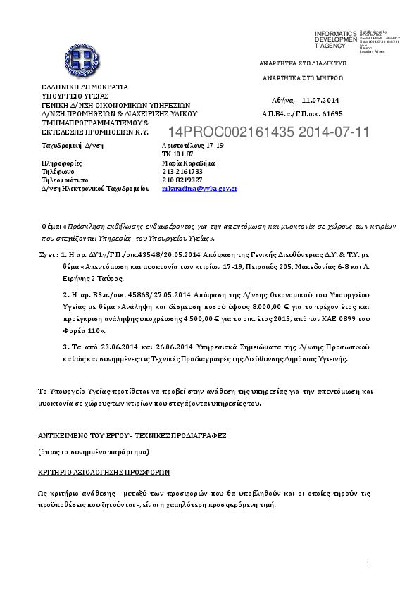 Αναζήτηση σε προκηρύξεις και συμβάσεις για: