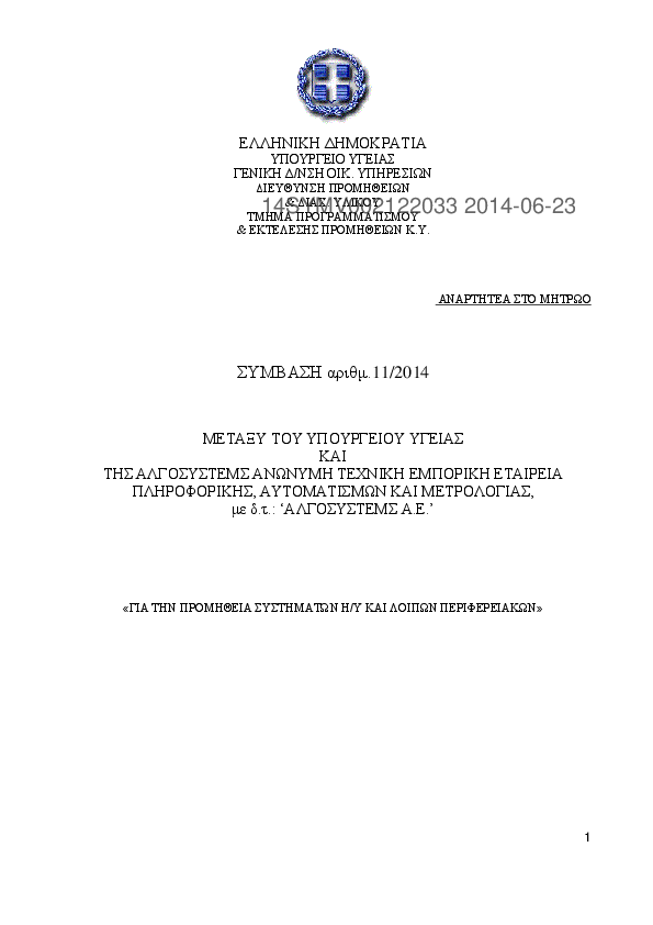 2. Σύμβαση αρ.11/2014 για την προμήθεια συστημάτων Η/Υ & λοιπών περιφερειακών