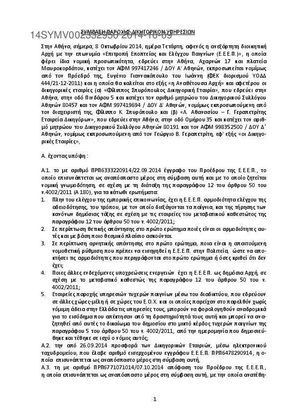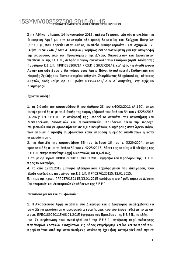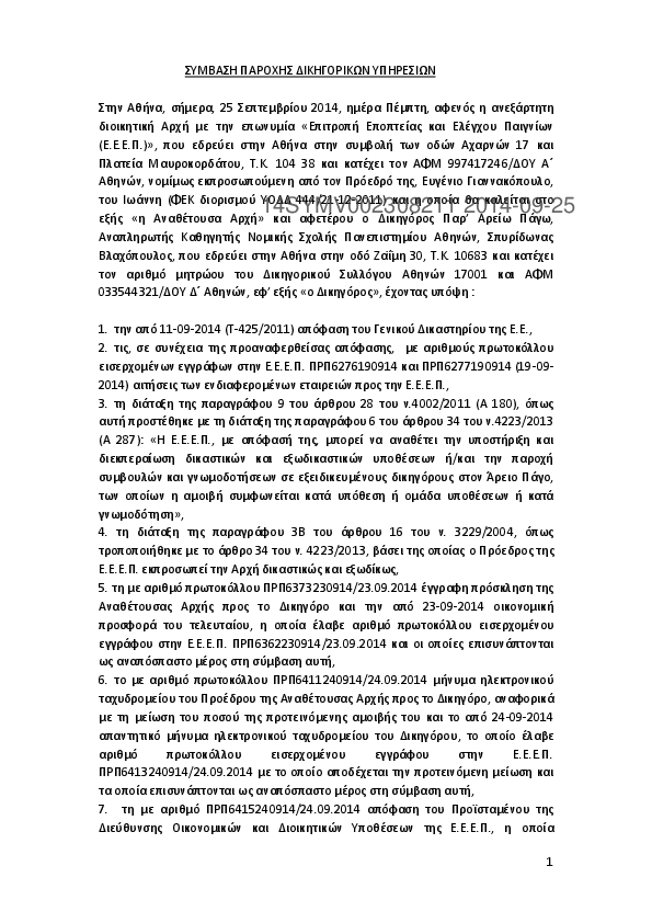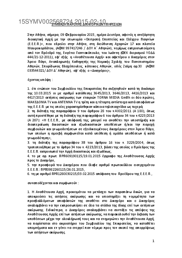 1. ΣΥΜΒΑΣΗ ΠΑΡΟΧΗΣ ΔΙΚΗΓΟΡΙΚΩΝ ΥΠΗΡΕΣΙΩΝ