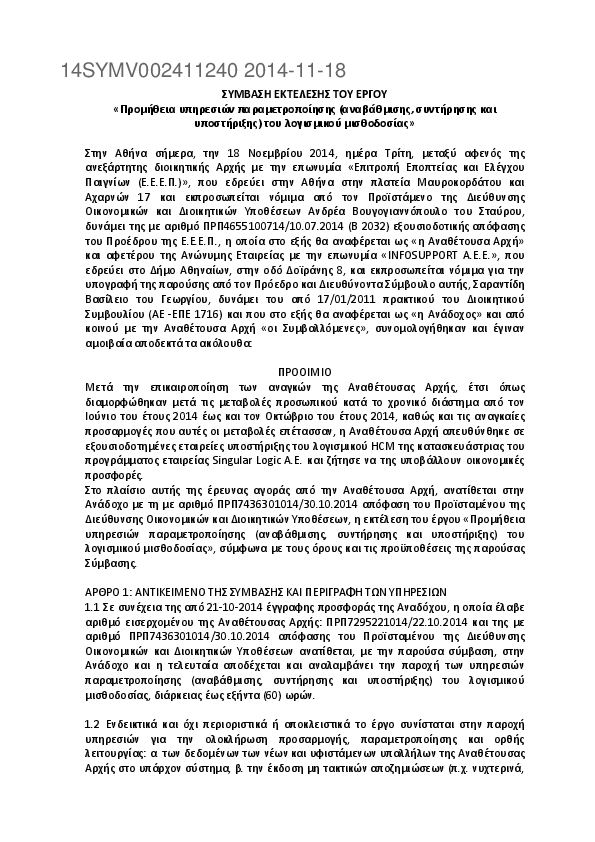 3. Σύμβαση προμήθειας υπηρεσιών παραμετροποίησης (αναβάθμισης, συντήρησης και υποστήριξης)