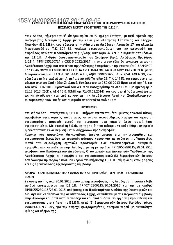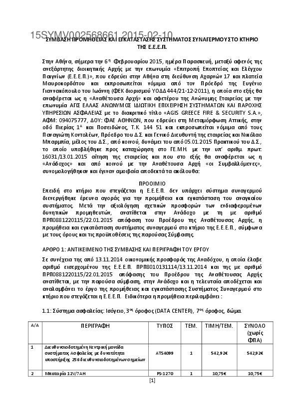 10. ΣΥΜΒΑΣΗ ΠΡΟΜΗΘΕΙΑΣ ΚΑΙ ΕΓΚΑΤΑΣΤΑΣΗΣ ΣΥΣΤΗΜΑΤΟΣ ΣΥΝΑΓΕΡΜΟΥ ΣΤΟ ΚΤΗΡΙΟ ΤΗΣ Ε.Ε.Ε.Π.
