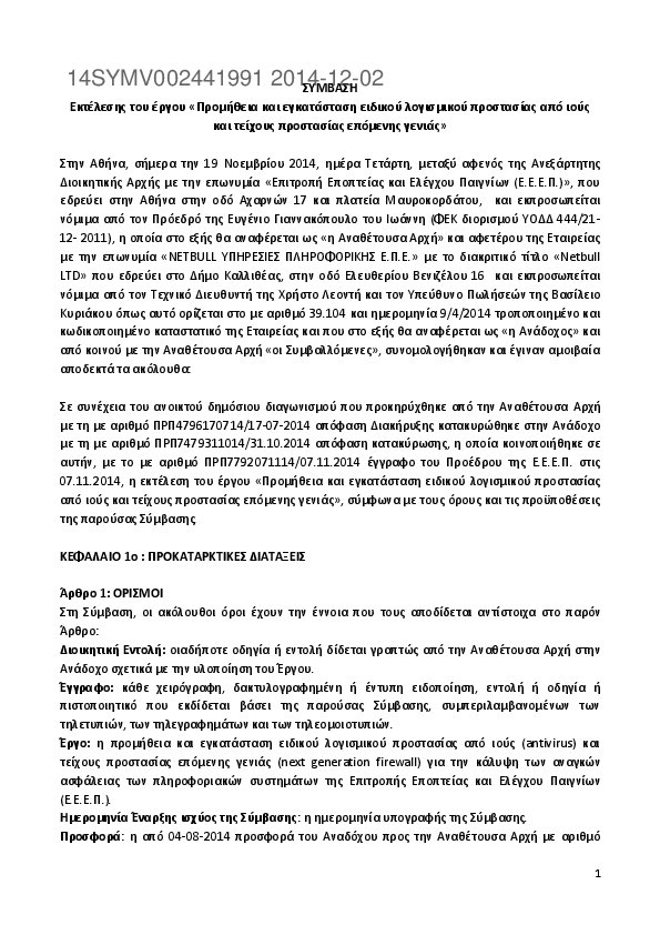 4. ΣΥΜΒΑΣΗ Προμήθεια και εγκατάσταση ειδικού λογισμικού προστασίας από ιούς και τείχους προστασίας επόμ