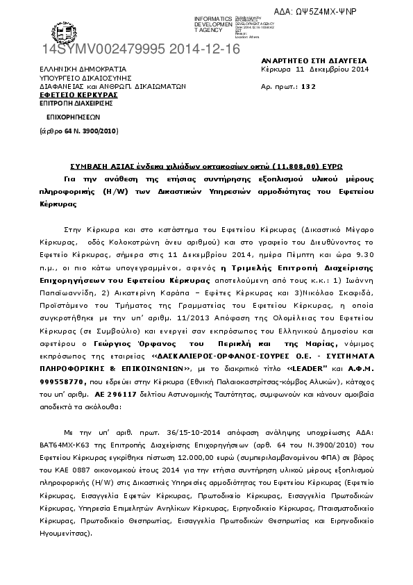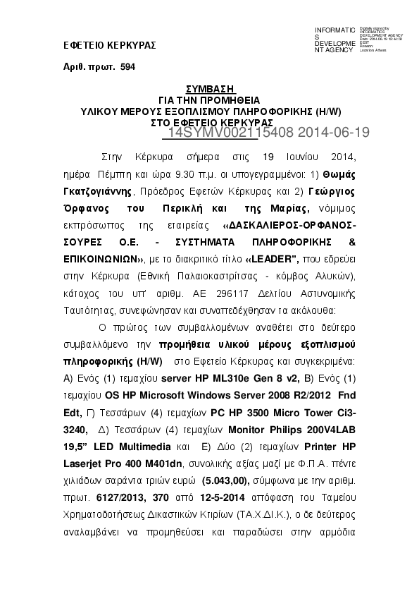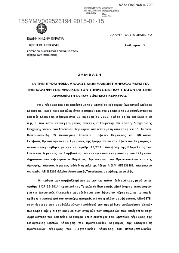 2. Σύμβαση για την προμήθεια υλικού μέρους εξοπλισμού πληροφορικής (H/W) στο Εφετείο Κέρκυρας