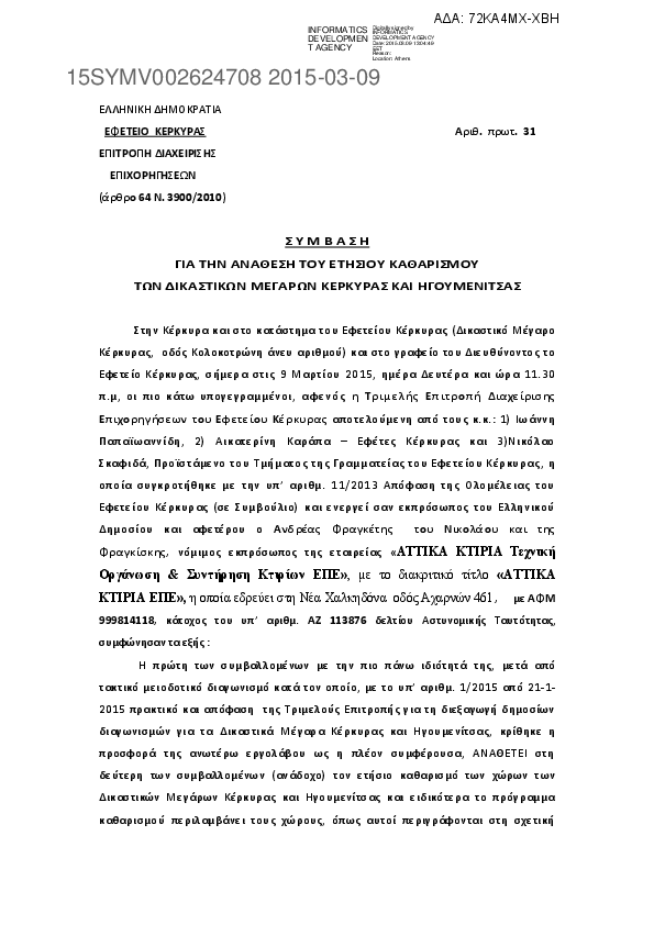 10. ΣΥΜΒΑΣΗ ΑΝΑΘΕΣΗΣ ΕΤΗΣΙΟΥ ΚΑΘΑΡΙΣΜΟΥ ΤΩΝ ΔΙΚΑΣΤΙΚΩΝ ΜΕΓΑΡΩΝ ΚΕΡΚΥΡΑΣ ΚΑΙ ΗΓΟΥΜΕΝΙΤΣΑΣ