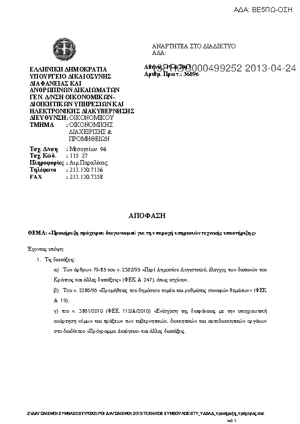2. Προκήρυξη πρόχειρου διαγωνισμού για την παροχή υπηρεσιών τεχνικής υποστήριξης