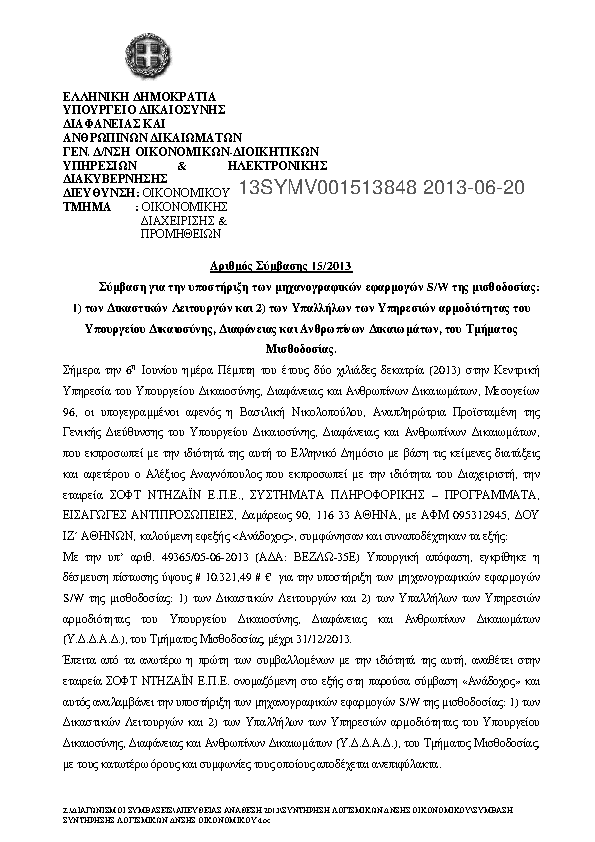 6. Σύμβαση για την υποστήριξη των μηχανογραφικών εφαρμογών S/W της μισθοδοσίας