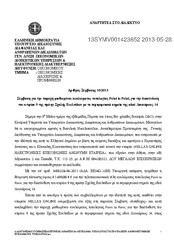 7. Σύμβαση για την παροχή μισθωμένου κυκλώματος τοπολογίας Point to Point, για το Πρωτ. Αθηνών