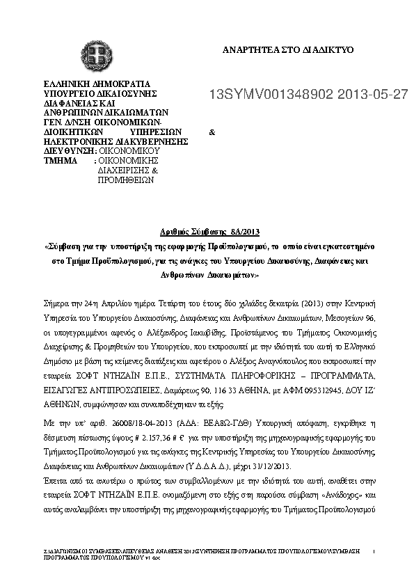 10. Σύμβαση για την υποστήριξη της εφαρμογής Προϋπολογισμού για τις ανάγκες της ΚΥΥΔΔΑΔ