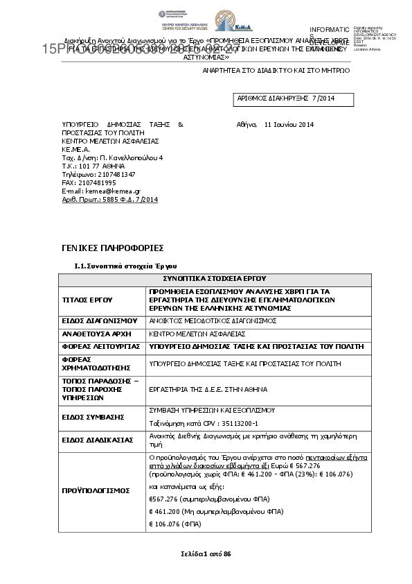 3. ΠΡΟΜΗΘΕΙΑ ΕΞΟΠΛΙΣΜΟΥ ΑΝΑΛΥΣΗΣ ΧΒΡΠ ΓΙΑ ΤΑ ΕΡΓΑΣΤΗΡΙΑ ΤΗΣ ΔΙΕΥΘΥΝΣΗΣ ΕΓΚΛΗΜΑΤΟΛΟΓΙΚΩΝ ΕΡΕΥΝΩΝ ΤΗΣ ΕΛΛΗΝΙΚΗΣ ΑΣΤΥΝΟΜΙΑΣ