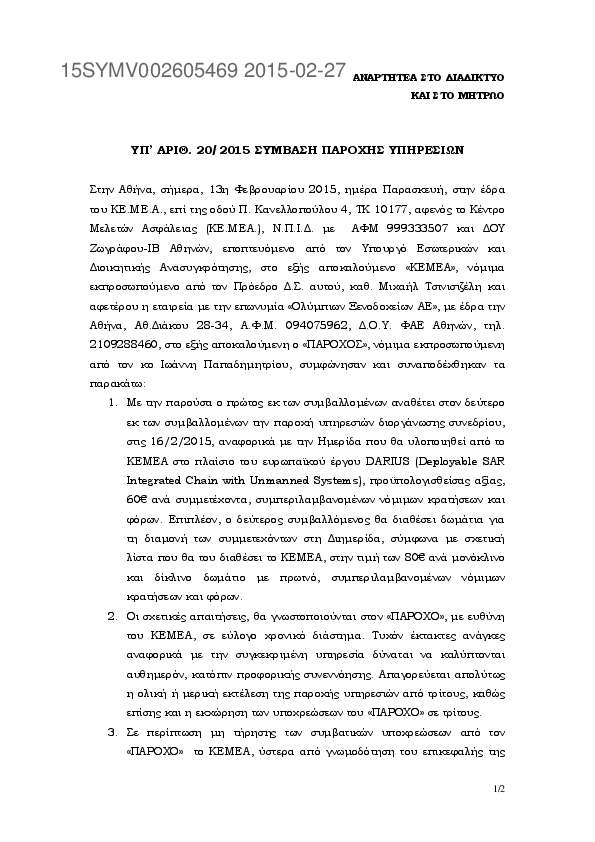 4. ΥΠ’ ΑΡΙΘ. 20/2015 ΣΥΜΒΑΣΗ ΠΑΡΟΧΗΣ ΥΠΗΡΕΣΙΩΝ
