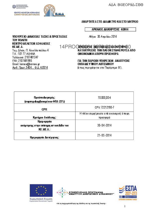 Αναζήτηση σε προκηρύξεις και συμβάσεις για: