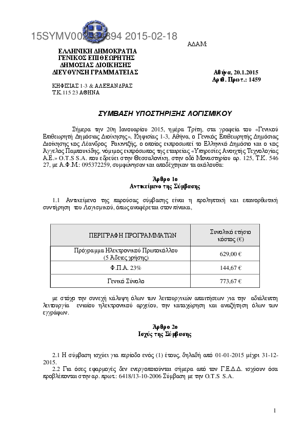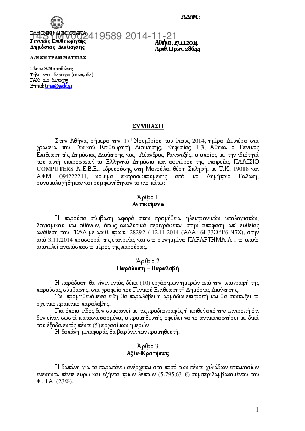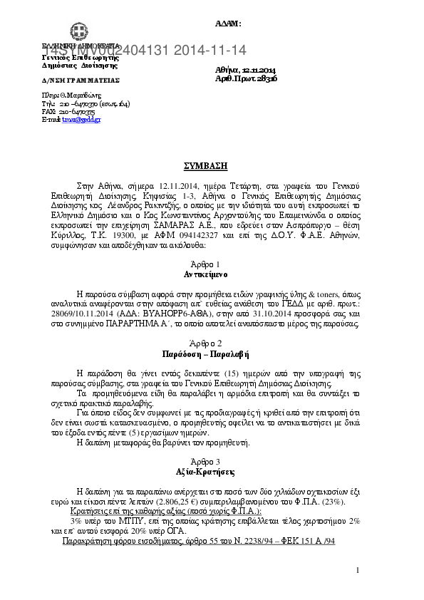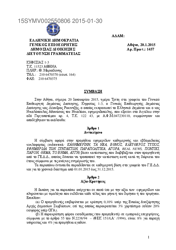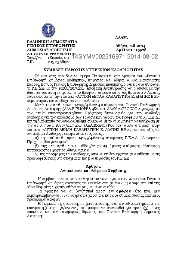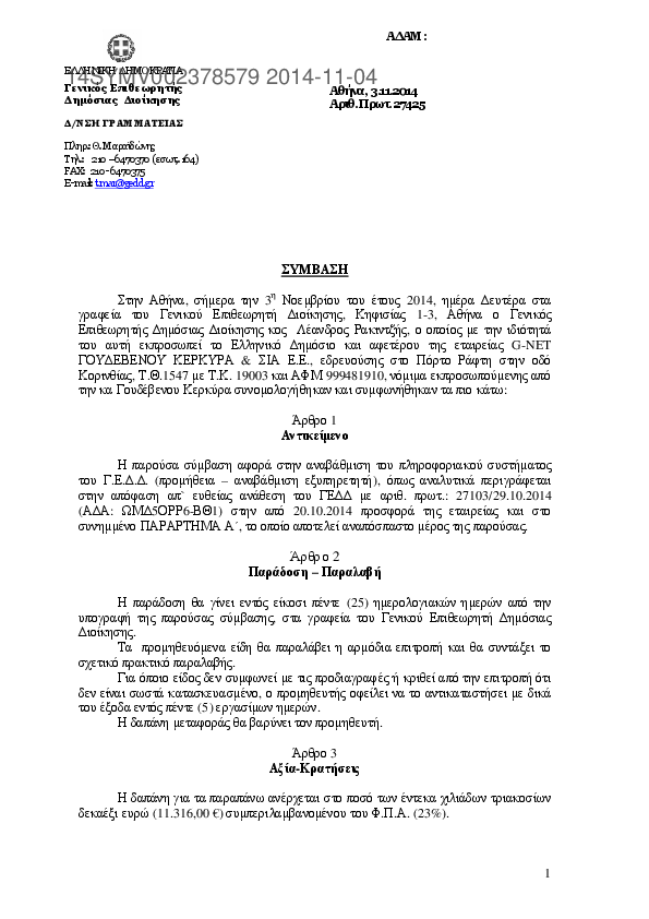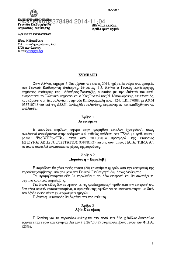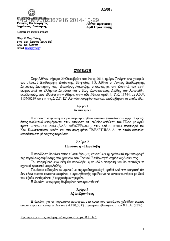 1. ΣΥΜΒΑΣΗ ΠΑΡΟΧΗΣ ΥΠΗΡΕΣΙΩΝ ΚΑΘΑΡΙΣΜΟΥ ΓΡΑΦΕΙΩΝ ΤΟΥ ΓΕΔΔ