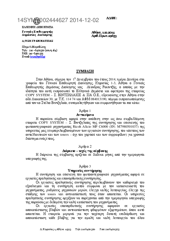 7. ΣΥΜΒΑΣΗ ΣΥΝΤΗΡΗΣΗΣ ΦΩΤΟΑΝΤΙΓΡΑΦΙΚΟΥ ΜΗΧΑΝΗΜΑΤΟΣ