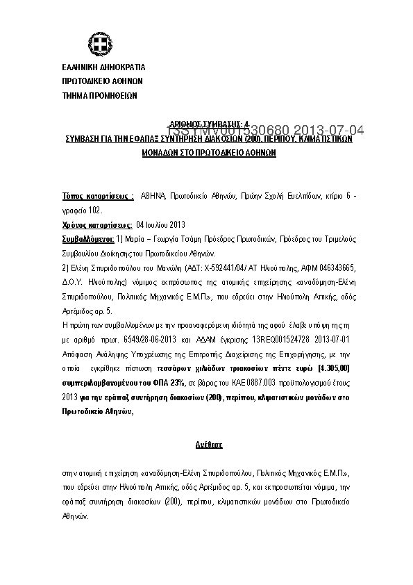 5. ΣΥΜΒΑΣΗ ΓΙΑ ΤΗΝ ΕΦΑΠΑΞ ΣΥΝΤΗΡΗΣΗ ΔΙΑΚΟΣΙΩΝ (200), ΠΕΡΙΠΟΥ, ΚΛΙΜΑΤΙΣΤΙΚΩΝ ΤΟΥ ΠΡΩΤΟΔΙΚΕΙΟΥ ΑΘΗΝΩΝ