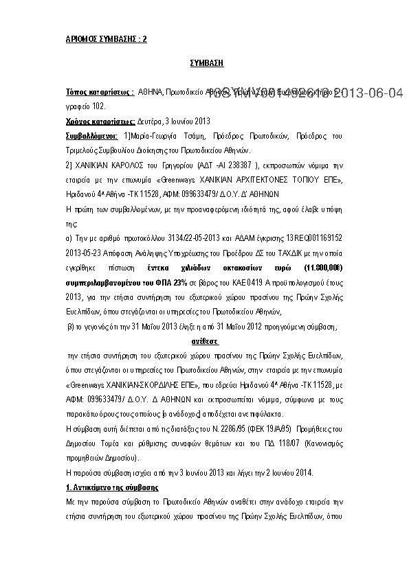 6. ΣΥΜΒΑΣΗ ΓΙΑ ΤΗΝ ΕΤΗΣΙΑ ΣΥΝΤΗΡΗΣΗ ΤΟΥ ΠΕΡΙΒΑΛΛΟΝΤΟΣ ΧΩΡΟΥ ΠΡΑΣΙΝΟΥ ΣΤΟ ΠΡΩΤΟΔΙΚΕΙΟ ΑΘΗΝΩΝ
