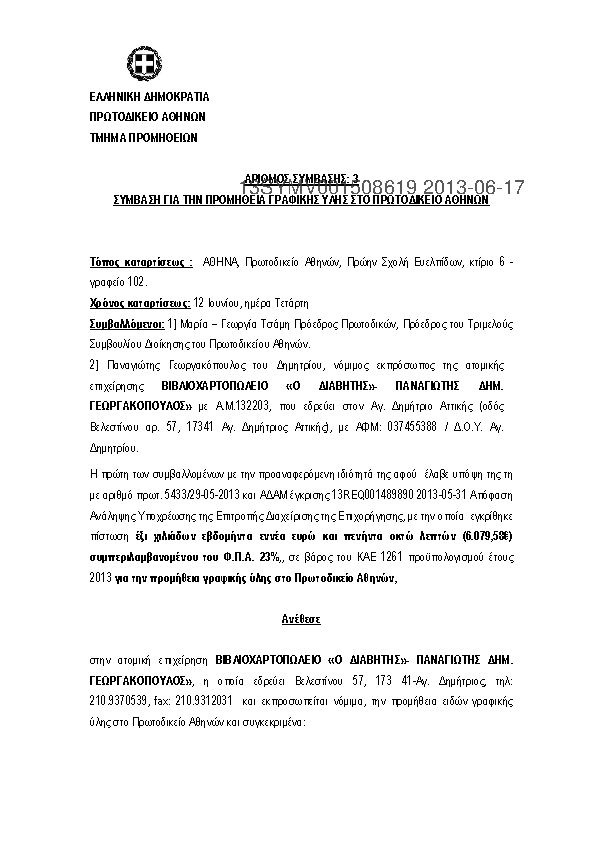 10. ΣΥΜΒΑΣΗ ΓΙΑ ΤΗΝ ΠΡΟΜΗΘΕΙΑ ΓΡΑΦΙΚΗΣ ΥΛΗΣ ΣΤΟ ΠΡΩΤΟΔΙΚΕΙΟ ΑΘΗΝΩΝ