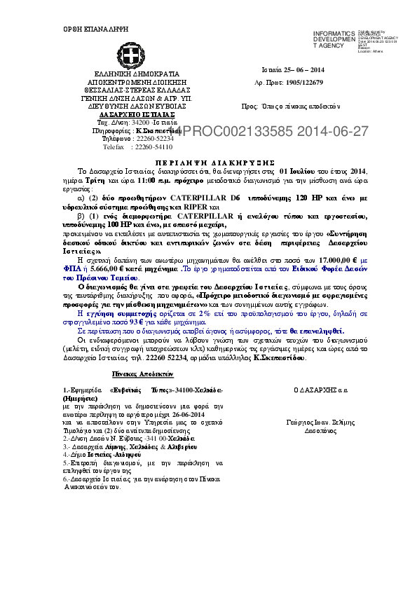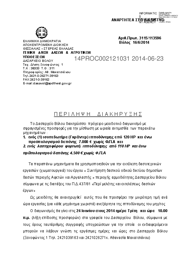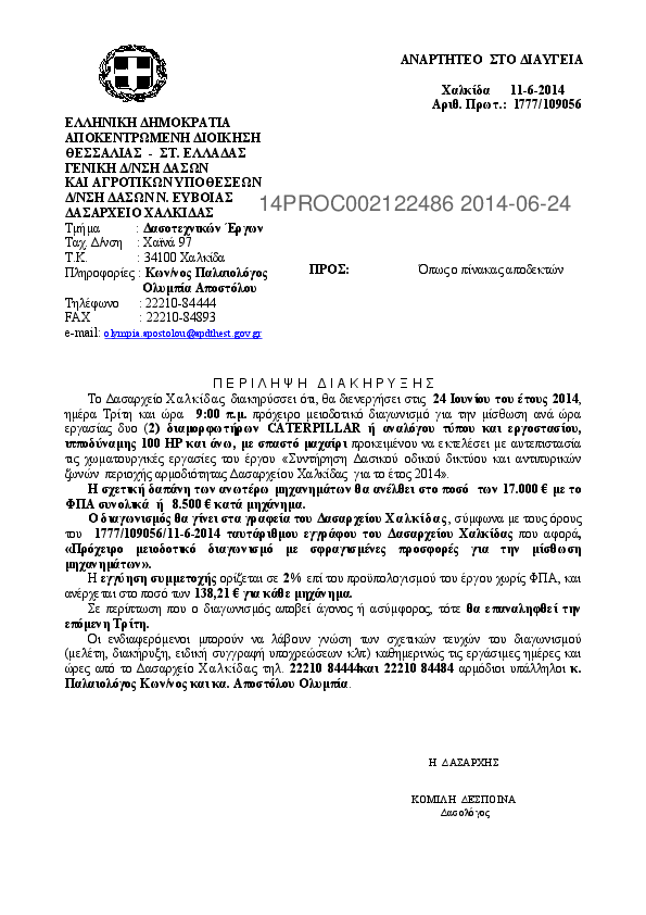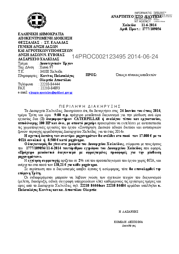 3. ΠΕΡΙΛΗΨΗ ΔΙΑΚΗΡΥΞΗΣ ΠΡΟΧΕΙΡΟΥ ΔΙΑΓΩΝΙΣΜΟΥ ΜΙΣΘΩΣΗΣ ΜΗΧΑΝΗΜΑΤΩΝ