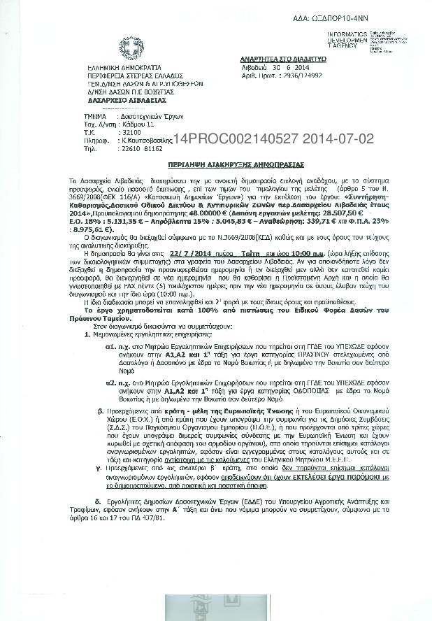 1. ΣΥΝΤΗΡΗΣΗ ΔΑΣΙΚΟΥ ΟΔΙΚΟΥ ΔΙΚΤΥΟΥ ΚΑΙ ΑΝΤΙΠΥΡΙΚΩΝ ΖΩΝΩΝ ΔΑΣΑΡΧΕΙΟΥ ΧΑΛΚΙΔΑΣ 2014