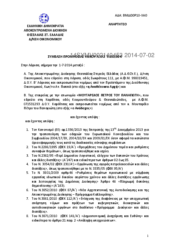 6. ΣΥΜΒΑΣΗ ΠΡΟΜΗΘΕΙΑΣ ΥΛΙΚΟΥ ΑΞΙΑΣ 9650,00 €