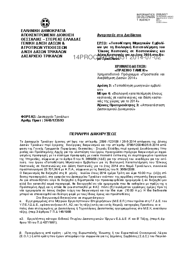 Αναζήτηση σε προκηρύξεις και συμβάσεις για: