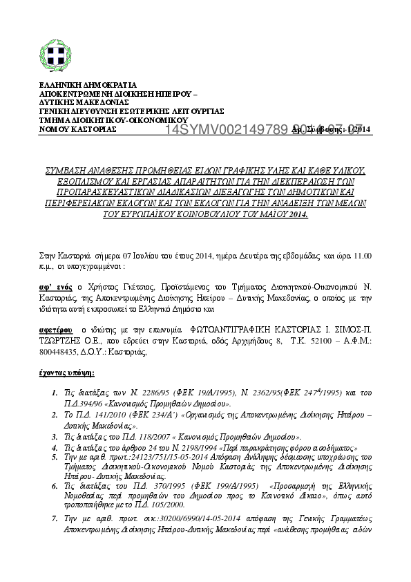 4. ΠΡΟΜΗΘΕΙΑ ΓΡΑΦΙΚΗΣ ΥΛΗΣ ΓΙΑ ΤΗΝ ΔΙΕΞΑΓΩΓΗ ΤΩΝ ΔΗΜΟΤΙΚΩΝ,ΠΕΡΙΦΕΡΕΙΑΚΩΝ & ΕΥΡΩΠΑΙΚΩΝ ΕΚΛΟΓΩΝ 2014