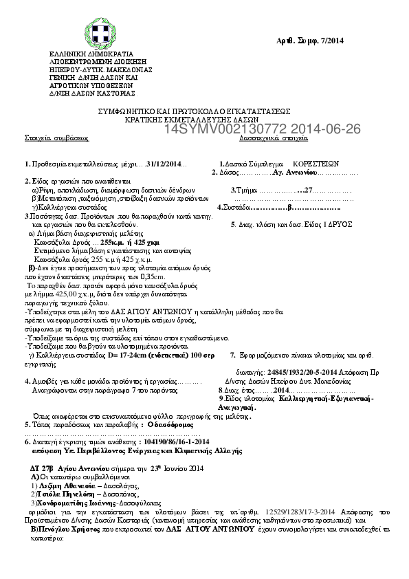 7. Βελτίωση δασικού οδικού δικτύου δημοσίων δασών Περιφερειακής Ενότητας Άρτας (Α΄ Δήμου Αρταίων)
