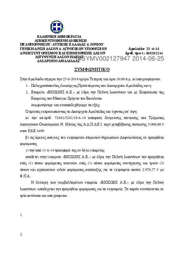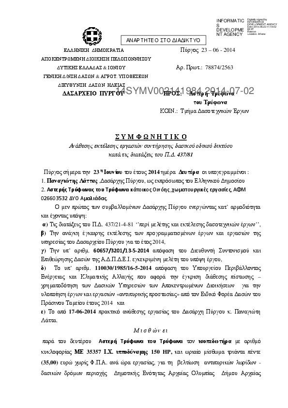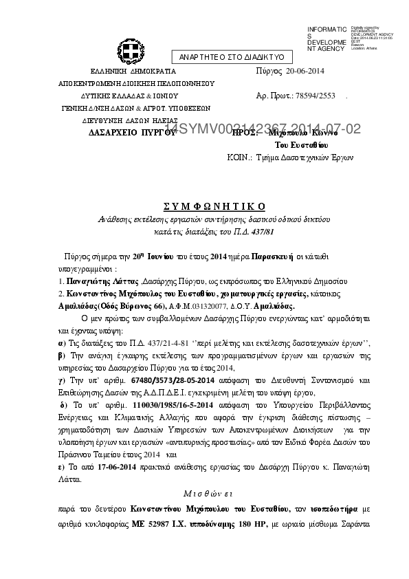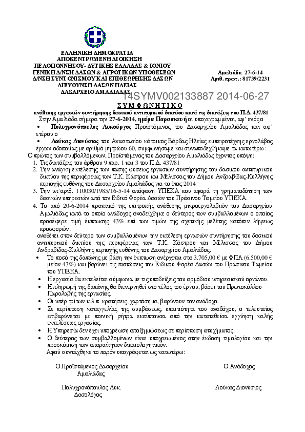 7. ΣΥΜΦΩΝΗΤΙΚΟ Ανάθεσης εκτέλεσης εργασιών συντήρησης δασικού οδικού δικτύου
