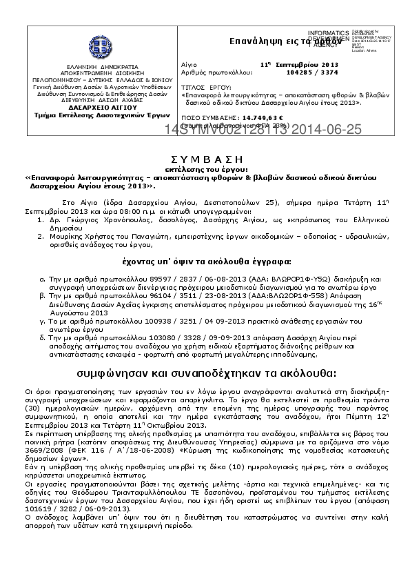 3. Σύμβαση εκτέλεσης του έργου: "Επαναφορά λειτουργικότητας - αποκατάσταση φθορών και βλαβών δασικού οδ