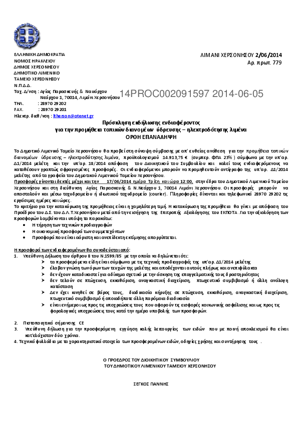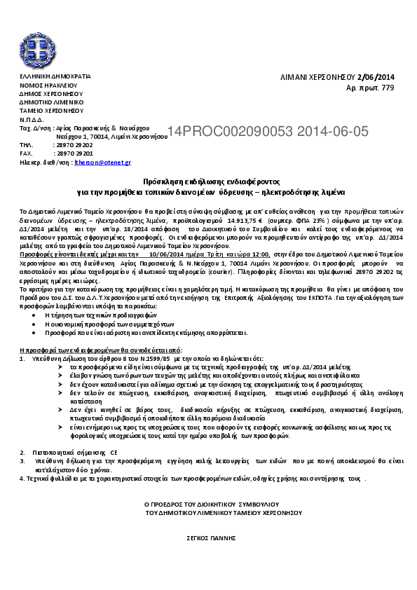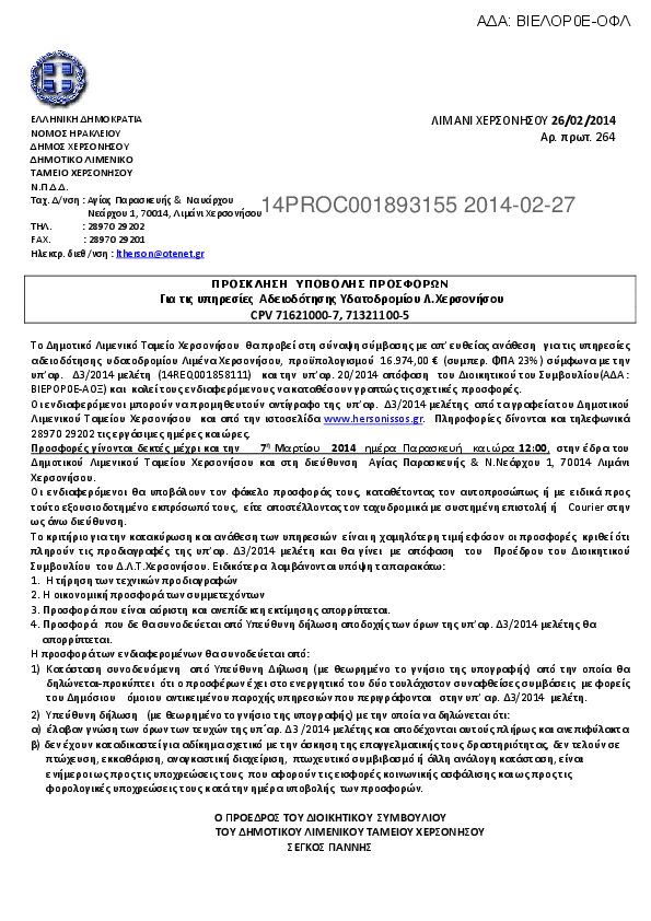 2. Πρόσκληση υποβολής προσφορών για τις υπηρεσίες Αδειοδότησης Υδατοδρομίου Λ.Χερσονήσου
