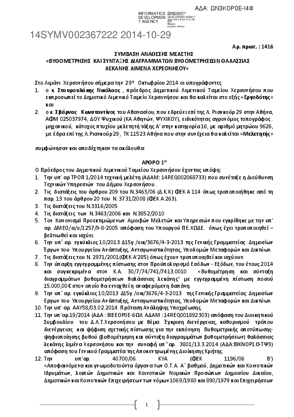 10. ΣΥΜΒΑΣΗ ΑΝΑΘΕΣΗΣ ΜΕΛΕΤΗΣ ΒΥΘΟΜΕΤΡΗΣΗΣ ΚΑΙ ΣΥΝΤΑΞΗΣ ΔΙΑΓΡΑΜΜΑΤΩΝ ΒΥΘΟΜΕΤΡΗΣΕΩΝ ΛΙΜ.ΧΕΡΣΟΝΗΣΟΥ