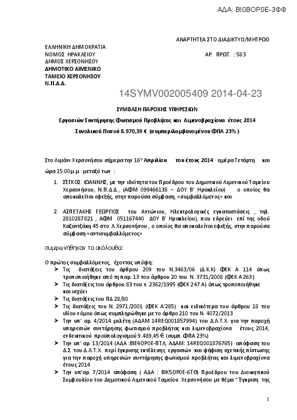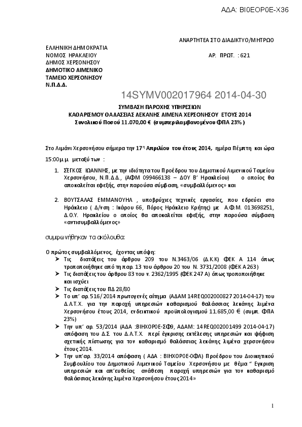 5. ΣΥΜΒΑΣΗ ΠΑΡΟΧΗΣ ΥΠΗΡΕΣΙΩΝ ΚΑΘΑΡΙΣΜΟΥ ΘΑΛΑΣΣΙΑΣ ΛΕΚΑΝΗΣ ΛΙΜΕΝΑ ΧΕΡΣΟΝΗΣΟΥ