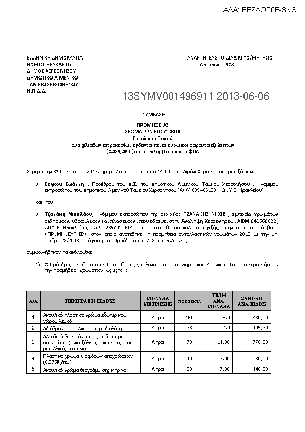 8. ΣΥΜΒΑΣΗ ΠΡΟΜΗΘΕΙΑΣ ΧΡΩΜΑΤΩΝ ΕΤΟΥΣ 2013