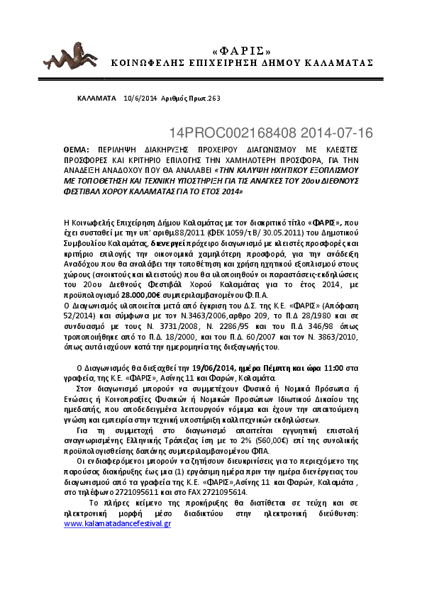 Αναζήτηση σε προκηρύξεις και συμβάσεις για: