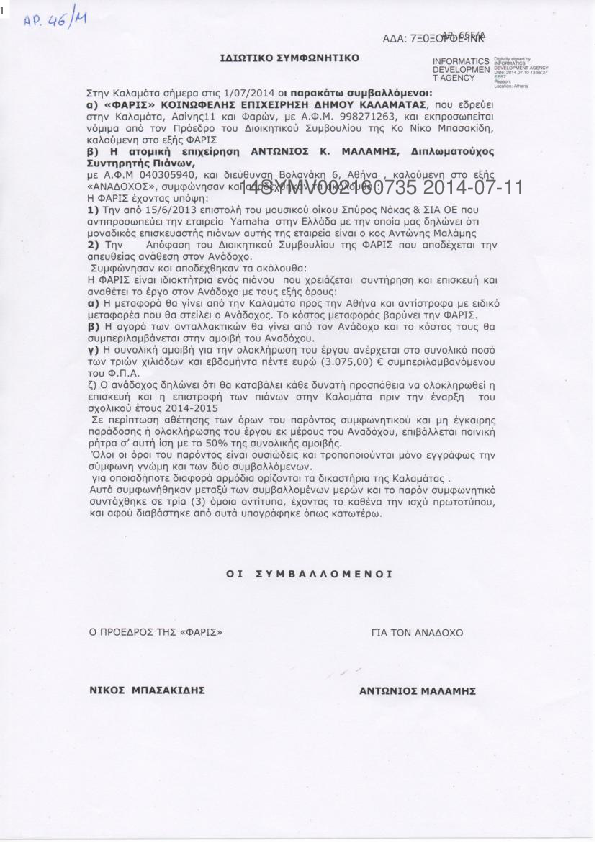 9. ΙΔΙΩΤΙΚΟ ΣΥΜΦΩΝΗΤΙΚΟ ''ΕΠΙΣΚΕΥΗ ΣΥΝΤΗΡΗΣΗ ΠΙΑΝΟΥ''