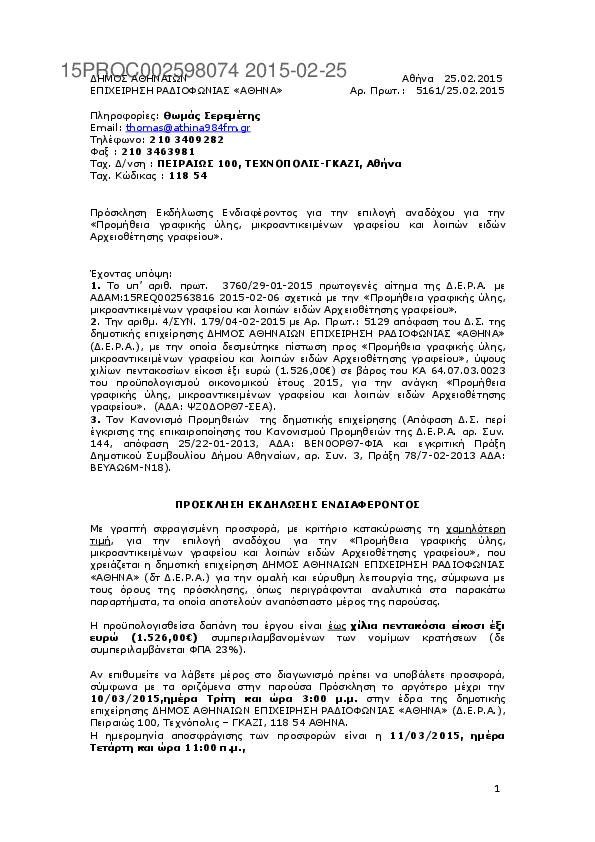 8. Προμήθεια γραφικής ύλης, μικροαντικειμένων γραφείου και λοιπών ειδών Αρχειοθέτησης γραφείου_2015