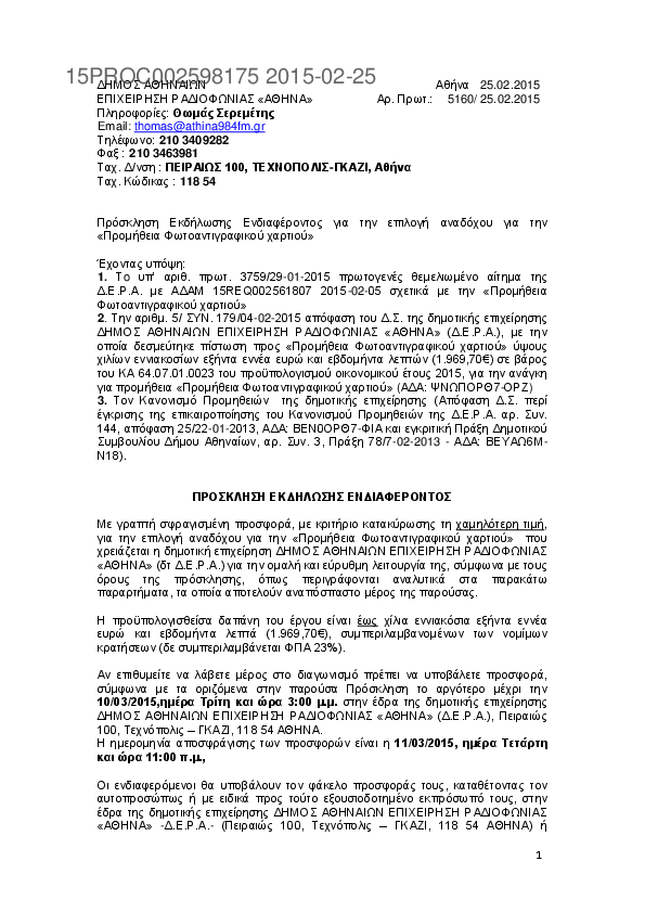 5. Προμήθεια Φωτοαντιγραφικού χαρτιού_2015