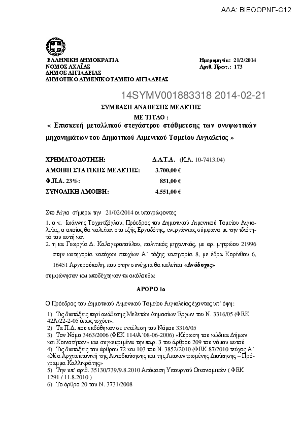 10. ΣΥΜΒΑΣΗ ΑΝΑΘΕΣΗΣ ΜΕΛΕΤΗΣ ΜΕ ΤΙΤΛΟ : « Επισκευή μεταλλικού στεγάστρου στάθμευσης των ανυψωτικών μηχα