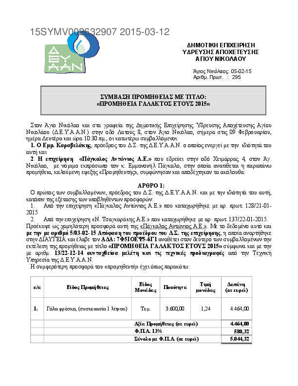 5. ΠΡΟΜΗΘΕΙΑ ΓΑΛΑΚΤΟΣ ΕΤΟΥΣ 2015