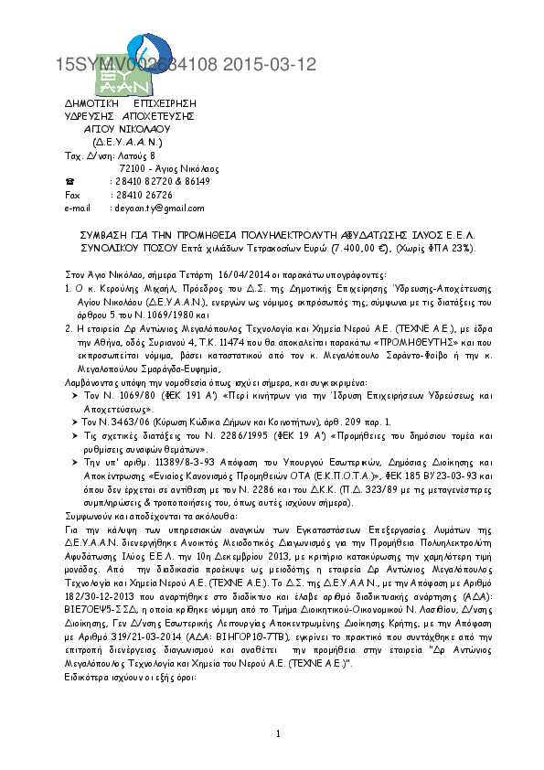 3. ΠΡΟΜΗΘΕΙΑ ΠΟΛΥΗΛΕΚΤΡΟΛΥΤΗ ΑΦΥΔΑΤΩΣΗΣ ΙΛΥΟΣ Ε.Ε.Λ.