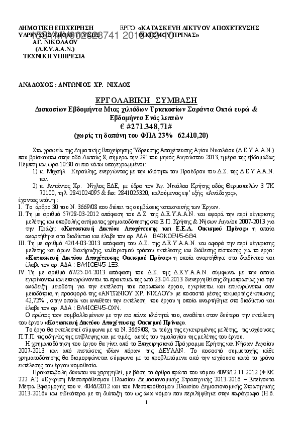 1. ΠΡΟΜΗΘΕΙΑ ΑΝΤΑΛΛΑΚΤΙΚΩΝ & ΕΠΙΣΚΕΥΗ ΑΝΤΛΙΑΣ ΠΡΟΩΘΗΤΙΚΟΥ ΔΑΜΑΚΑ Δ.Ε ΝΕΑΠΟΛΕΩΣ