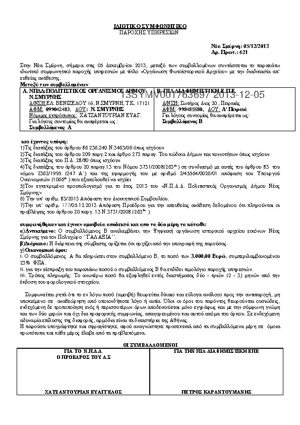 7. ΙΔΙΩΤΙΚΟ ΣΥΜΦΩΝΗΤΙΚΟ ΄΄ΟΡΓΑΝΩΣΗ ΦΩΤΟΙΣΤΟΡΙΚΟΥ ΑΡΧΕΙΟΥ΄΄ ΓΙΑ ΤΟΝ ΠΟΛΥΧΩΡΟ ΄΄ΓΑΛΑΞΙΑ